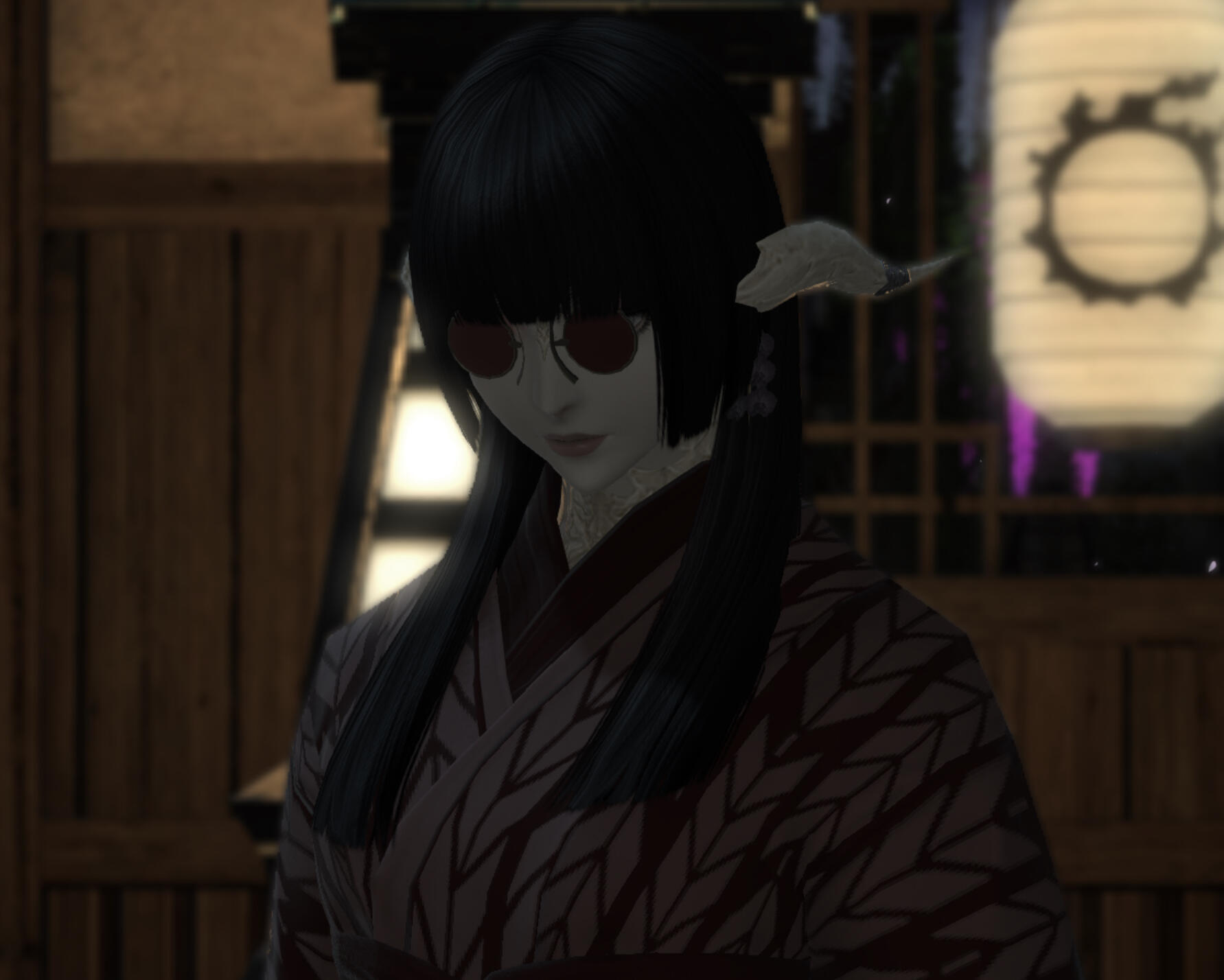 Katsuna finds herself living a dual life. Her time as Miko only providing a touch of solace, an opportunity to find calm and do right by the Kami for her past mistakes hoping to be worthy of their protection even if she felt like she didn’t deserve it. While as Geiko she finds herself hosting and entertaining dangerous company in the Yakuza underbelly of Kugane and Shirogane. While profitable, she willingly subjects herself to that dark world in hopes of reuniting with her lost friend and Geiko sister, Sakura. She strictly keeps these two lives completely separate from one another.• Sightless