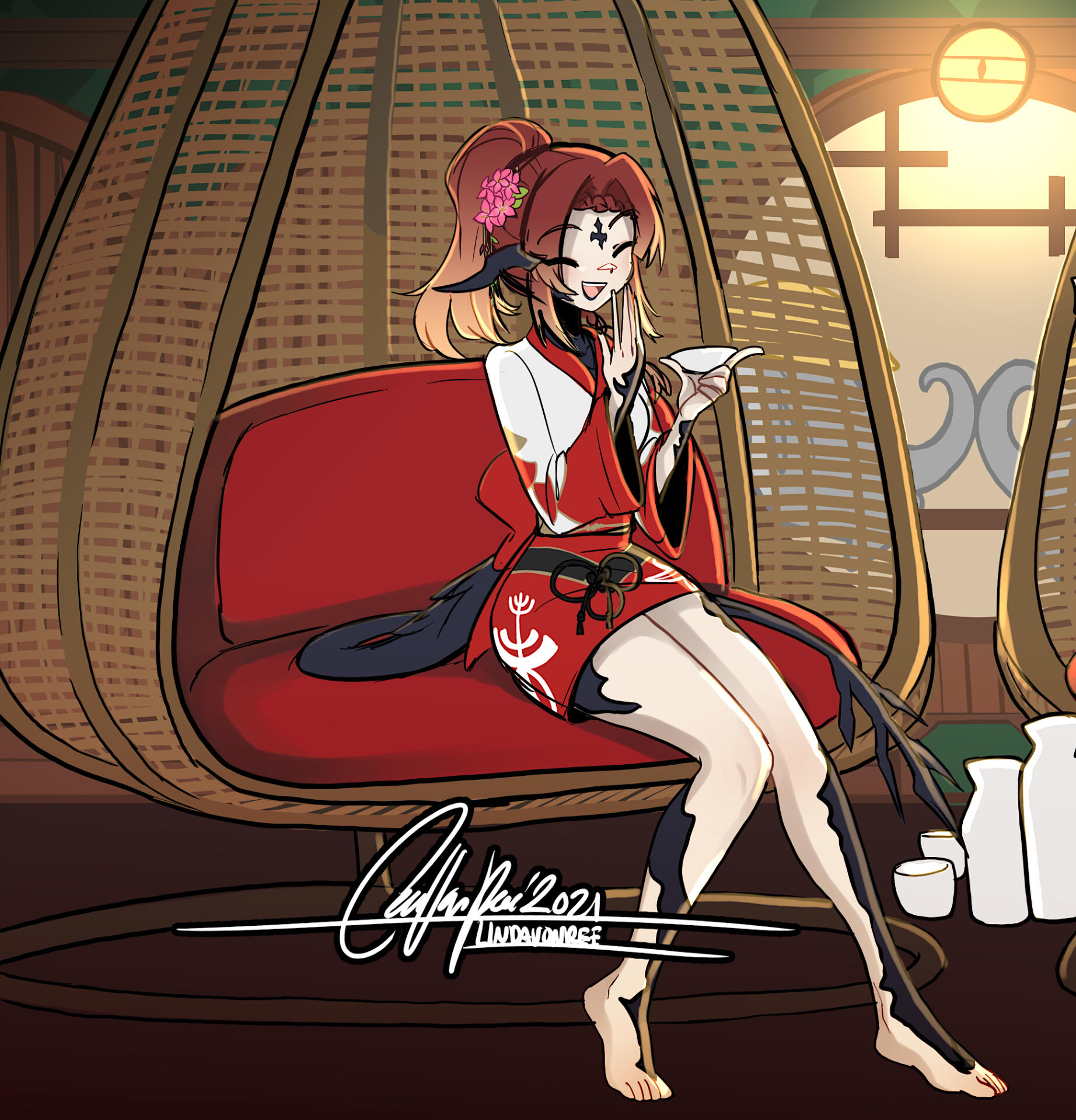 Katsuna bares the weight of a cursed soul, misfortune always seeming to follow every step she takes. While always putting on a false front, Katsuna chooses to hide this part of her from everyone she comes close to. Wishing not to subject those she loves to the curse within, choosing to face her own demons head on instead.• Devoted Shrine Maiden by day, Graceful Geiko by night…